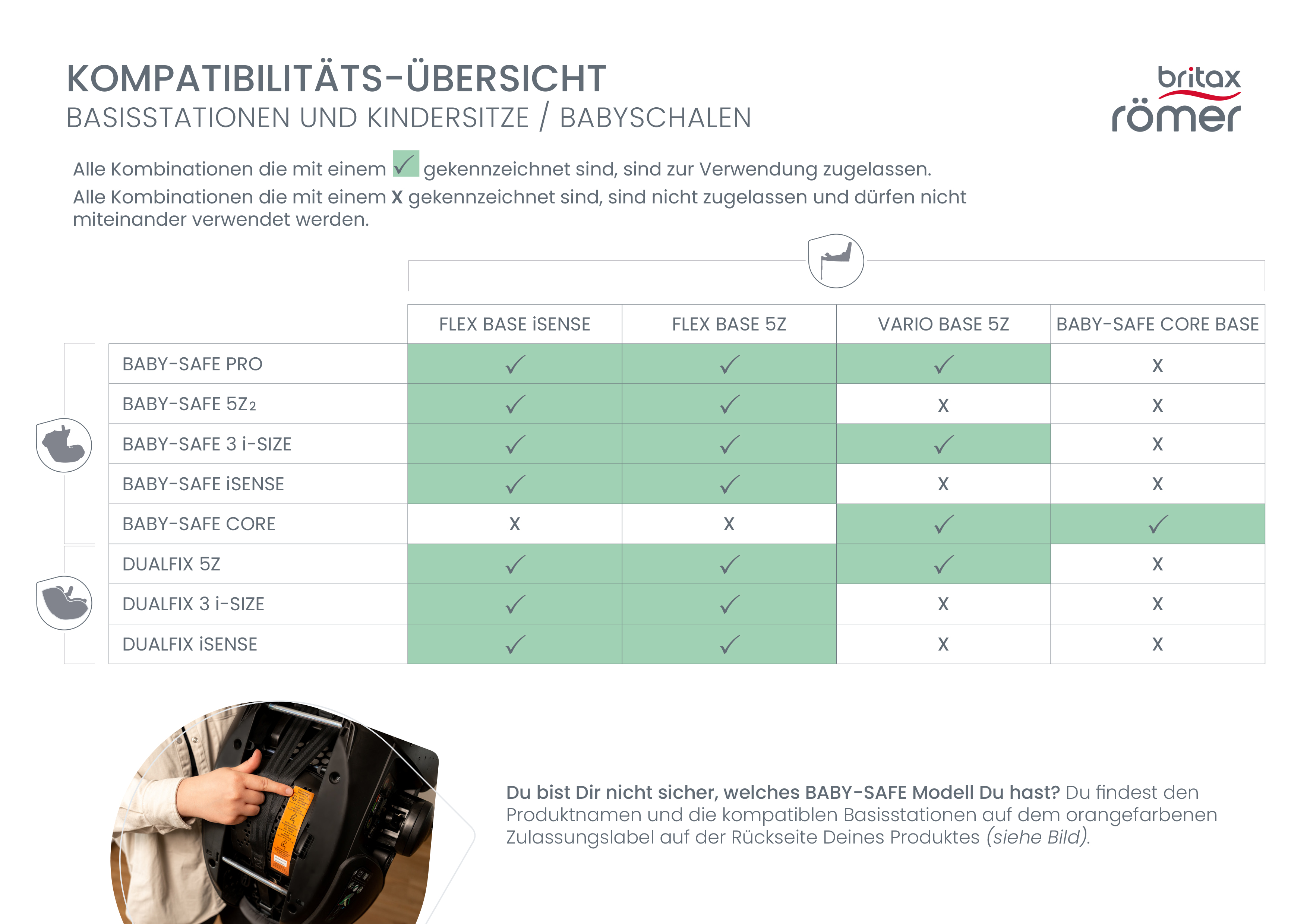 Babyschalen der Gruppe 0/0+ müssen entgegen der Fahrtrichtung befestigt werden. Diese Sitze dürfen nicht in Verbindung mit einem Airbag auf dem Beifahrersitz verwendet werden. Dasselbe gilt für unsere Produkte der Gruppe 0+/1 und Gruppe 1/2, wie etwa FIRST CLASS PLUS, MAX-FIX II, DUALFIX, wenn sie rückwärts gerichtet angebracht werden, MAX-WAY und MULIT-TECH II. MAX-FIX II und DUALFIX dürfen außerdem nur in Fahrzeugen verwendet werden, die über einen ISOFIX-Anschluss am Beifahrersitz verfügen. Bitte beachten Sie die Gebrauchsanweisung für Ihren Kindersitz und Ihr Fahrzeug.